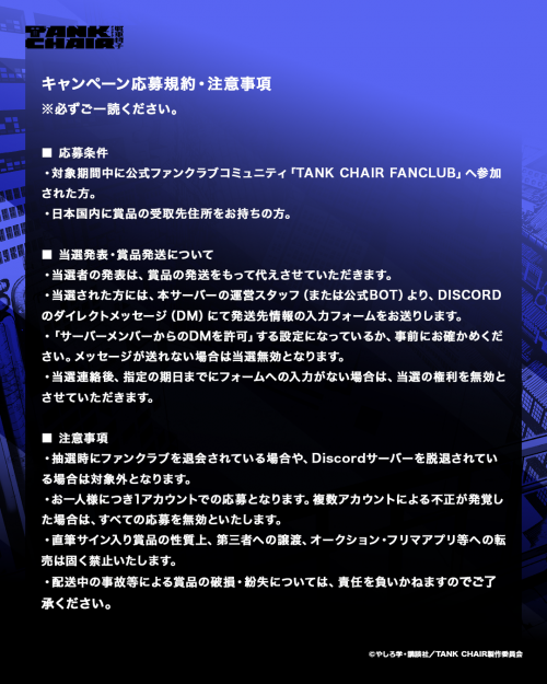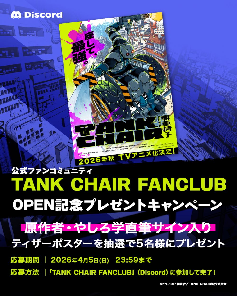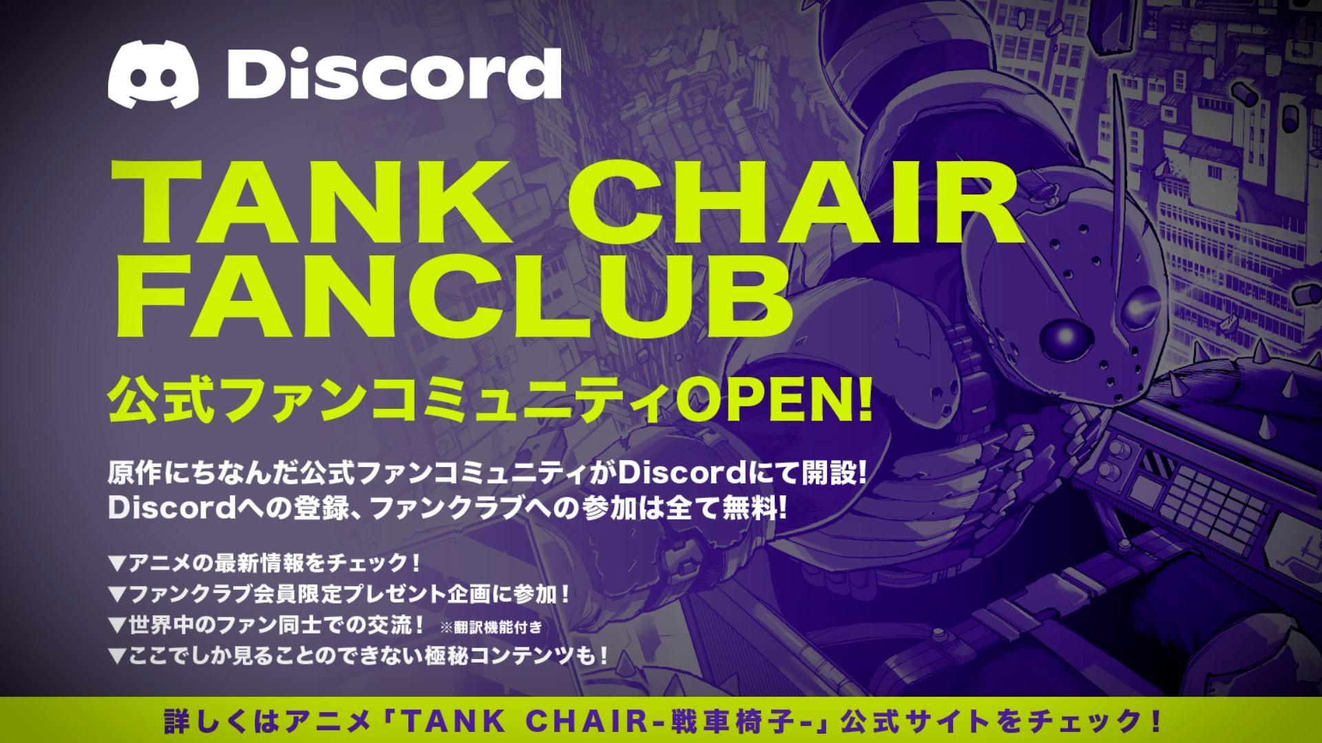 原作にちなんだ公式ファンコミュニティ「TANK CHAIR FANCLUB」をDiscordにて開設いたします!