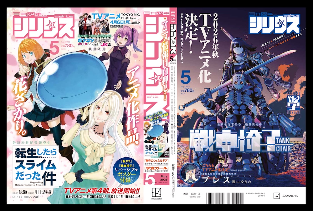 2026/03/26 INFO 月刊少年シリウス2026年5月号が本日発売!裏表紙はTVアニメ『TANK CHAIR-戦車椅子-』! 『戦車椅子-TANK CHAIR-』が好評連載中の「月刊少年シリウス」(講談社)2026年5月号が本日発売!裏表紙はTVアニメ『TANK CHAIR-戦車椅子-』!是非チェックしてください🔥 URL:https://shonen-sirius.com/